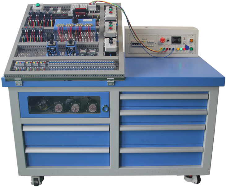 實(shí)訓裝置主要由實(shí)訓桌、智能電源控制屏、電氣網(wǎng)孔板、電器元件與電氣線(xiàn)路檢測系統等組成。
