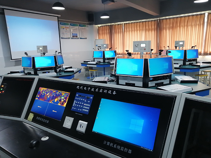 "互聯(lián)網(wǎng)+現代電工電子技術(shù)實(shí)訓室",該"互聯(lián)網(wǎng)+現代電子技術(shù)實(shí)訓室"功能先進(jìn),實(shí)驗方法科學(xué),如實(shí)驗報告自動(dòng)生成,隨機選擇某個(gè)學(xué)生實(shí)驗過(guò)程進(jìn)行網(wǎng)絡(luò )直播,實(shí)驗模塊帶自動(dòng)識別、自動(dòng)供電、信號自動(dòng)輸入、示波器自動(dòng)探測功能,虛擬測量?jì)x器達十多種,通過(guò)互聯(lián)網(wǎng)時(shí)時(shí)監控與指導每個(gè)學(xué)生實(shí)驗過(guò)程等,該實(shí)驗室各項指標達國際先進(jìn)水平。