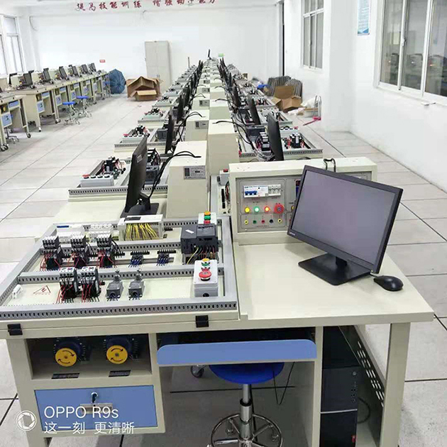 2.電氣實(shí)訓功能:該功能硬件部分包含:通用網(wǎng)孔板、角度調節支架、電氣器件等。角度調試結構根據人體工程學(xué)設計,通用安裝板可在0-60度電動(dòng)調節安裝角度,學(xué)生可以根據身高和操作習慣進(jìn)行角度調節,符合人機工程需求。學(xué)生可以在網(wǎng)孔板上進(jìn)行日常的器件安裝與電氣線(xiàn)路的接線(xiàn)等,可以讓學(xué)生掌握電氣的設計、安裝、調試與優(yōu)化等技能。