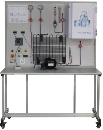 實(shí)訓臺提供1/9匹冰箱制冷壓縮機QD60(85W 0.65A R12)、直冷式蒸發(fā)器(鋁復合板吹脹式蒸發(fā)器及下蒸發(fā)器、鋼絲式冷凝器(17檔)、冷凝風(fēng)扇照明燈及門(mén)開(kāi)關(guān)雙金屬片熱保護繼電器、PTC啟動(dòng)器、重錘啟動(dòng)器、毛細管。