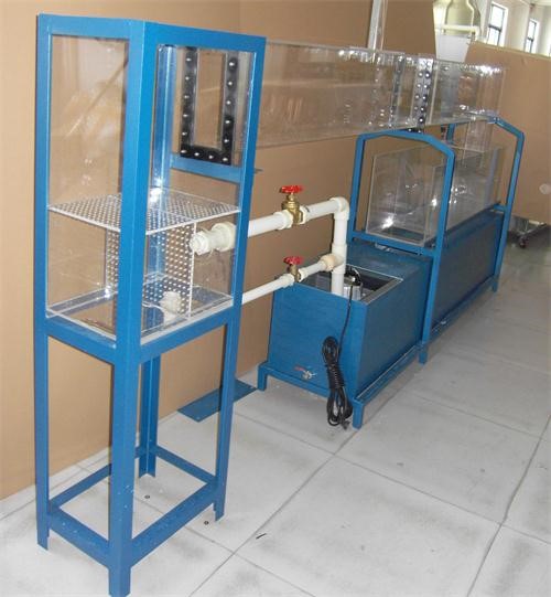 主要配置:實(shí)驗工作槽,三角量水堰、回水蓄水槽、供水段穩水頭部、多種實(shí)驗模型、測量?jì)x器、供水泵、流量調節裝置等組成,空間三疊層緊縮布置。