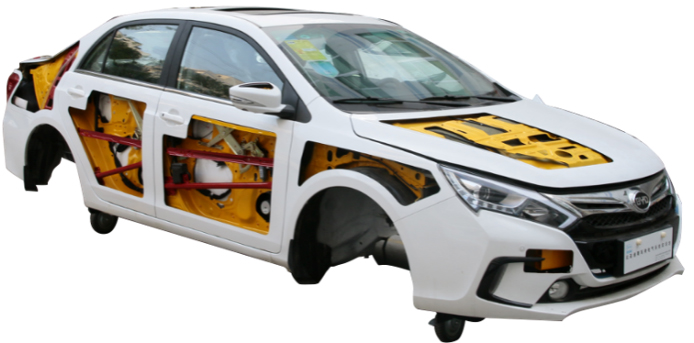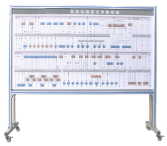 3.設備由原車(chē)解剖的車(chē)身平臺和教學(xué)板組成,原車(chē)車(chē)身車(chē)殼安裝原車(chē)零部件,底部安裝4個(gè)腳輪,移動(dòng)靈活,腳輪帶自鎖裝置。