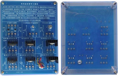 對常用晶體管的分類(lèi)及管腳判斷進(jìn)行了介紹,展示半導體三極管、達林頓復合管、場(chǎng)效應管MOSFET、絕緣柵雙極晶體管IGBT,單向晶閘管SCR,雙向晶閘管TRIAC的圖示,列舉了常用9013、3DJ6F的識讀方法;展示了小功率三極管、塑封大功率三極管、達林頓復合管、場(chǎng)效應管MOSFET、絕緣柵雙極晶體管IGBT,單向晶閘管SCR,雙向晶閘管TRIAC等實(shí)物,提供檢測接口。