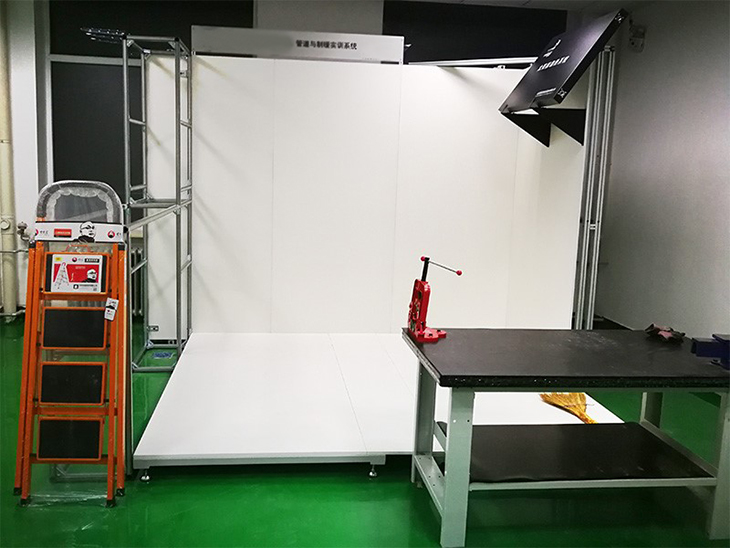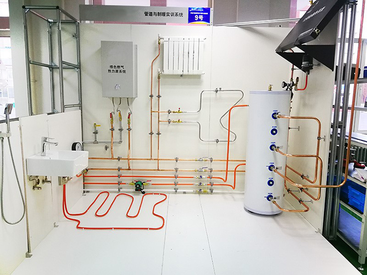 管道與制暖實(shí)訓設備主要有管道與制暖綜合實(shí)訓裝置和管工實(shí)訓工位兩部分組成。管道與制暖綜合實(shí)訓裝置可進(jìn)行水暖設備(廚房水槽柜、壁掛式小便池、淋浴花灑、盥洗池、暖氣包)布局,冷、熱水給水管路,供暖管路,排水管路的設計和安裝。管道安裝綜合了高密度PE管、PPR管、鋼管套多種形式。管工實(shí)訓工位主要有移動(dòng)式鋼管套絲臺、管虎鉗、PPR熱熔機等設備組成,可進(jìn)行鋼管和PPR兩種管道的加工和基本技能實(shí)訓。