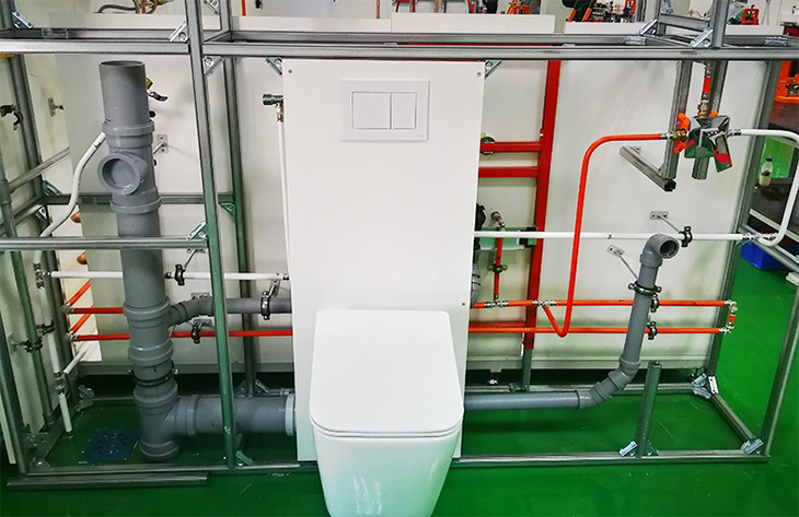 TECEprofil墻前安裝系統,掛墻式馬桶、掛墻式洗臉盆和暗裝入墻式花灑,國際知名一線(xiàn)品牌衛浴產(chǎn)品,安裝方式新穎,實(shí)訓內容豐富。方便鍛煉學(xué)生各種操作技能。