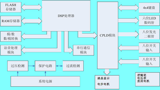 1、中心處理模塊。主要包括DSP微處理器TMS320VC5402,RAM(CY7C1021),FALSH(SST39LF200A),是整個(gè)實(shí)驗驗裝的核心部分,負責整個(gè)實(shí)驗系統各模塊間的控制。