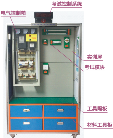 5、安全防范結構要求:如牢固接地,按鈕指示燈內置,電機防護罩等,結構不能偏離工業(yè)實(shí)際應用,柜內包含電氣實(shí)操/考核板,工具隔板、電機及電機安裝板等。