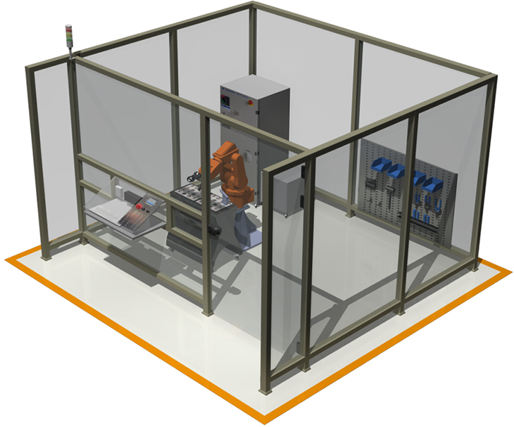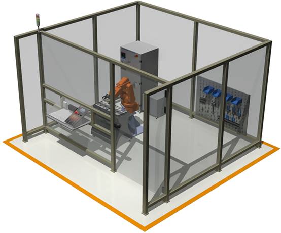 1、隔離護欄,總體高1200mm,框架采用2mm厚灰色鋁合金材料,其他全部安裝10mm厚透明鋼化玻璃;帶一個(gè)側開(kāi)門(mén),左右推拉式,占地2000~2300mm×2000~2300mm; 2、系統工作站安裝有3個(gè)急停按鈕,分別位于操作控制臺、模型安裝臺、隔離護欄上,以備緊急情況使用; 3、在隔離護欄、安全門(mén)、設備等顯眼位置粘貼多種安全標識,實(shí)時(shí)提醒設備的安全運行。 |