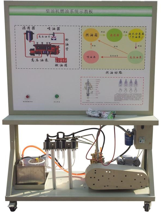 2.實(shí)訓臺面板采用4mm厚耐腐蝕、耐創(chuàng )擊、耐污染、防火、防潮的高級鋁塑板,表面經(jīng)特殊工藝噴涂底漆處理;面板打印有永不褪色的彩色電路圖;學(xué)員可直觀(guān)對照電路圖和電控高壓共軌柴油發(fā)動(dòng)機實(shí)物,認識和分析控制系統的工作原理。