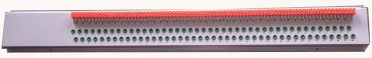(3)一體化接線(xiàn)排:接線(xiàn)排殼體上兩側相對設置有一初級接線(xiàn)區(接線(xiàn)端子)和一次級接線(xiàn)區(安全插座);接線(xiàn)端子與對應的安全插座通過(guò)導電彈性件連接;接線(xiàn)排殼體邊緣卷折,設有固定用的螺孔,可以通過(guò)螺絲桿固定在實(shí)訓桌上。