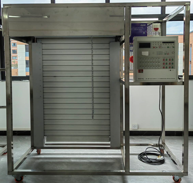 由模擬房間、卷簾門(mén)、卷簾門(mén)控制柜、火災報警控制器、火災探測器、以及相應的聯(lián)動(dòng)控制系統組成
