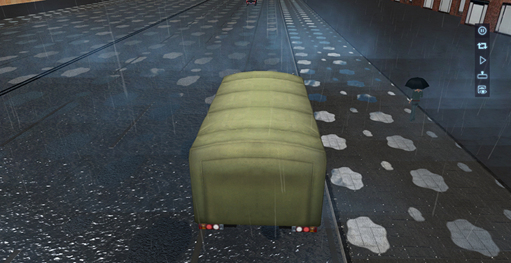 7.6、場(chǎng)景天氣類(lèi)型具有:晴天、陰天、雨天、雪天、霧天、夜晚等模塊,不同天氣有不同場(chǎng)景效果,同時(shí)路面有不同的屬性。道路上的行人密度、車(chē)輛密度可調節.