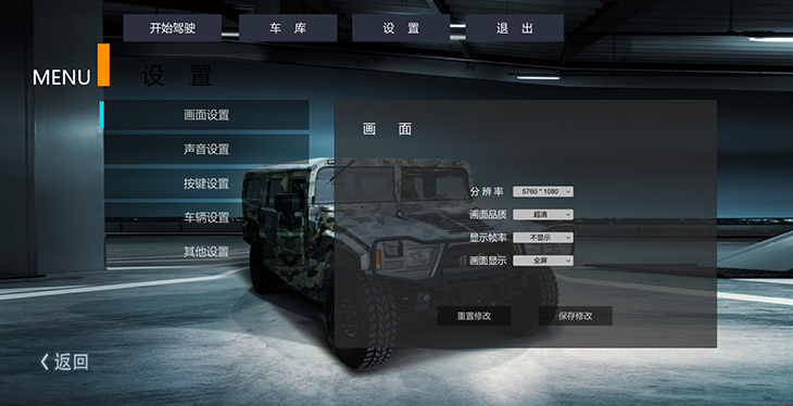 7.2、汽車(chē)設置界面:調整車(chē)輛各項動(dòng)力學(xué)參數、車(chē)輛后視鏡及視角調整。