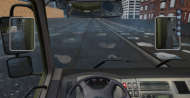 模擬器右邊10寸觸摸屏: 確定、返回、上下左右功能鍵選擇,車(chē)內和車(chē)外景切換。