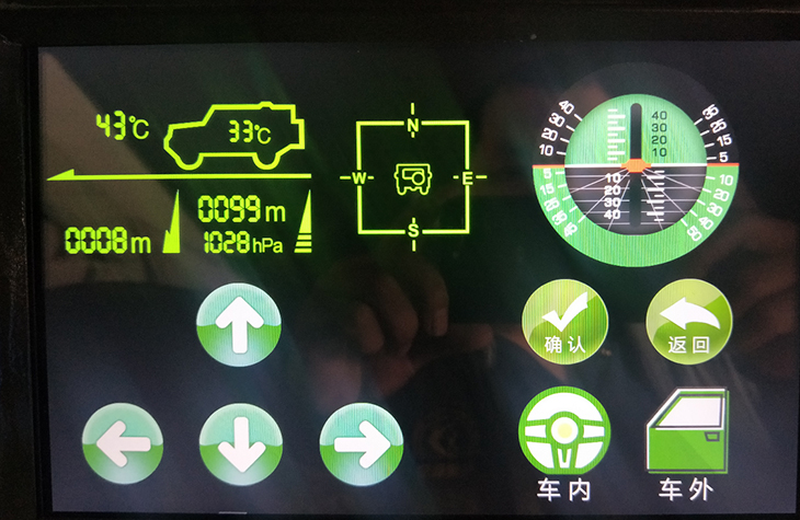 模擬器右邊觸摸屏: 確定、返回、上下左右功能鍵選擇,車(chē)內和車(chē)外景切換。
