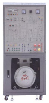 煤電鉆綜合保護實(shí)訓裝置采用柜式結構,柜子上部分為鋁面板,面板上繪制有電氣原理圖,并引出相應觀(guān)測孔,以供學(xué)生測試分析用。下部分可放置ZBZ系列礦用隔爆型煤電鉆綜合保護裝置實(shí)物(用戶(hù)可以根據教學(xué)需要進(jìn)行選配,若不配也可作為儲物柜使用),實(shí)物可配合鋁面板上的資源進(jìn)行短路、漏電、電纜絕緣、煤電鉆的遠方啟?刂频仍囼。