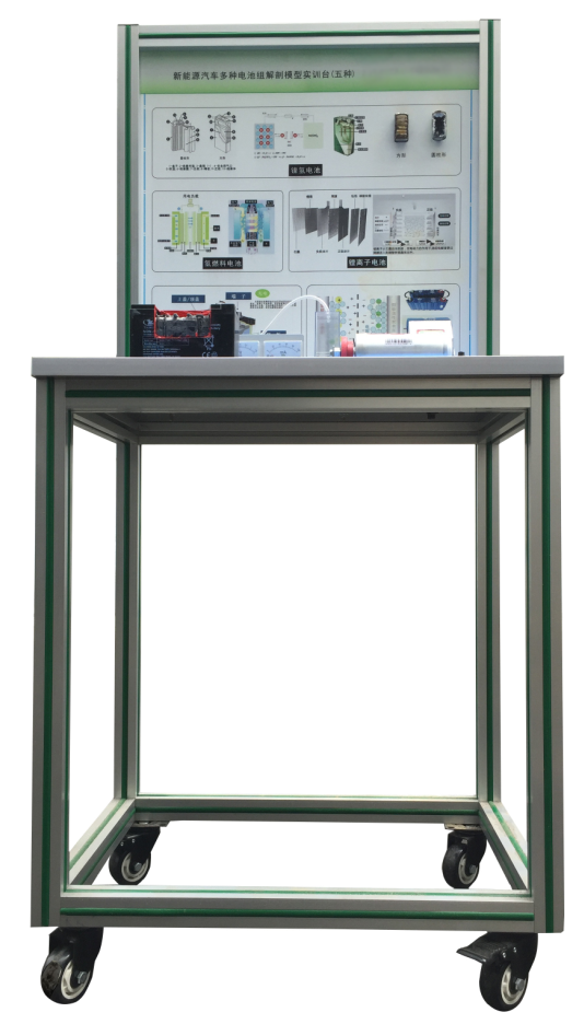 2.實(shí)訓臺由可移動(dòng)臺架與原理面板組成,面板立放,繪制三維立體解剖結構圖,介紹電池基本知識,展示電池基本參數。