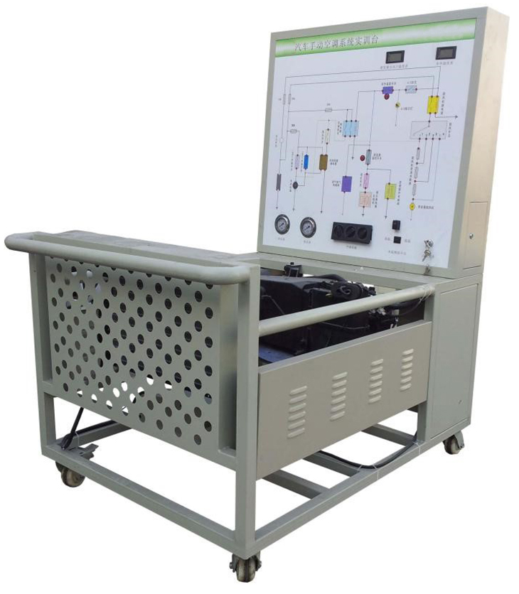 1.要求配備檢測控制面板、診斷座、點(diǎn)火開(kāi)關(guān)、信號模擬信號板、高壓壓力表、低壓壓力表、數字式進(jìn)風(fēng)口溫度表、數字式出風(fēng)口溫度表、空調控制器總成、空調開(kāi)關(guān)、空調自診斷系統、空調蒸發(fā)箱總成、壓縮機總成、膨脹閥總成、干燥器總成、鼓風(fēng)機總成、冷凝器、加熱器、循環(huán)水泵、冷卻電子風(fēng)扇、三相異步電動(dòng)機、智能化故障設置和考核系統、移動(dòng)臺架(帶自鎖腳輪裝置)。
