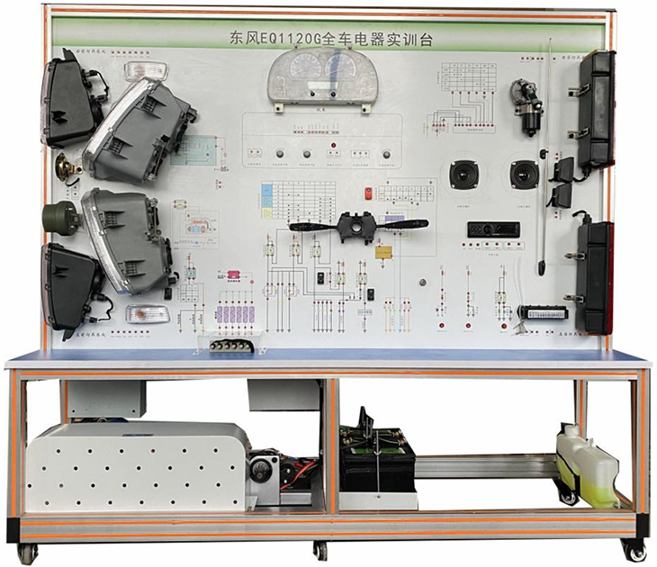 電氣實(shí)訓設備采用全新東風(fēng)天錦EQ1120GA2柴油機整車(chē)電器實(shí)物為基礎,充分展示汽車(chē)儀表系統、燈光系統、雨刮系統、喇叭系統、發(fā)動(dòng)機電器系統、起動(dòng)系統和充電系統等汽車(chē)電器各系統的組成結構和工作過(guò)程。適用于學(xué)校對整車(chē)電器理論和維修實(shí)訓的教學(xué)需要。