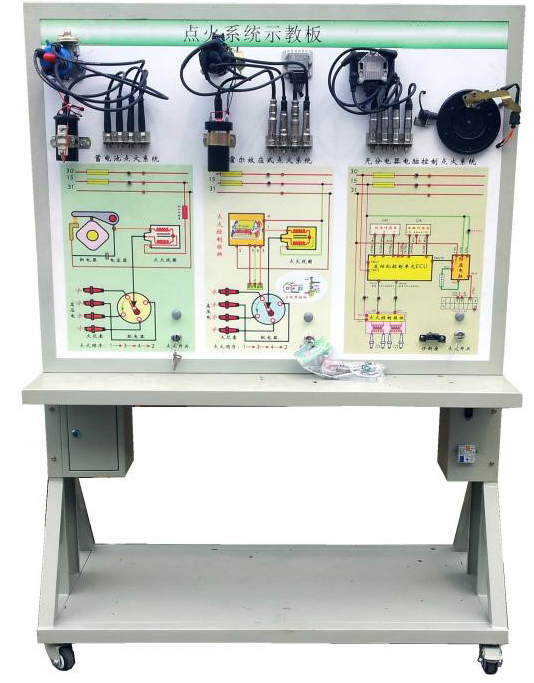 汽油發(fā)動(dòng)機點(diǎn)火系統保養模塊教具架該設備采用全新 三種典型(即:觸點(diǎn)式點(diǎn)火系統、霍爾式電子點(diǎn)火系統、無(wú)分電器分組點(diǎn)火系統)的發(fā)動(dòng)機點(diǎn)火系統的真實(shí)部件,充分展示發(fā)動(dòng)機點(diǎn)火系統的組成結構和工作過(guò)程。