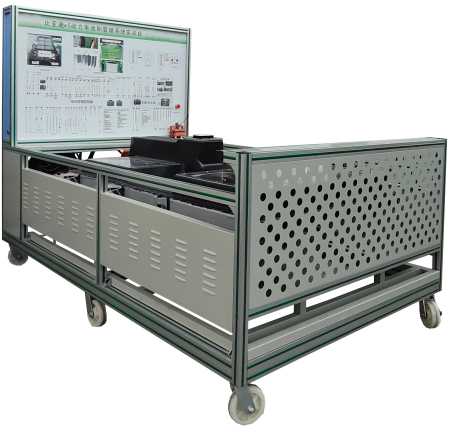 (比亞迪e5 EV300純電動(dòng)汽車(chē)) 鋰動(dòng)力電池組、電池管理系統BMS、BMS顯示屏(7寸觸摸屏)、維修開(kāi)關(guān)、輔助蓄電池(12V45AH)、高壓配電箱、漏電傳感器、車(chē)載充電機、國標充電插座與充電槍、直流接觸器(包含充電繼電器、總正繼電器、總負繼電器、預充繼電器)、急停開(kāi)關(guān)與電源總開(kāi)關(guān)、一體化全鋁合金型材搭建的移動(dòng)臺架(1500×700×1700mm ,帶自鎖腳輪裝置,帶安裝檢測端子的原理面板1448×940mm)、故障考核系統、設備操作說(shuō)明書(shū)。