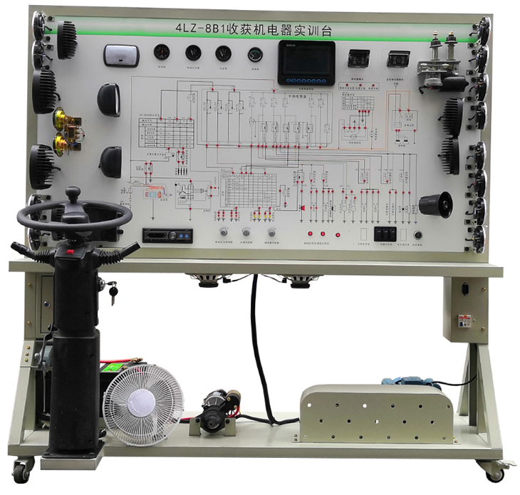 一、目標:收獲機電器實(shí)訓臺以4LZ-8B1收割機整車(chē)電器實(shí)物為基礎,能夠充分展示儀表系統、燈光系統、雨刮系統、喇叭系統、影像系統、起動(dòng)系統和充電系統等電器各系統的組成結構和工作過(guò)程。能夠滿(mǎn)足收獲機培訓期間對整車(chē)電器理論和維修實(shí)訓的教學(xué)需要。