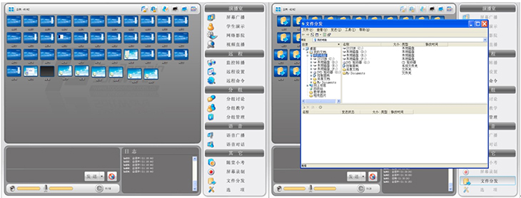 ⑥具有分屏廣播、文件分發(fā)、作業(yè)提交、網(wǎng)絡(luò )考場(chǎng)、遠程輔導、遠程監控、網(wǎng)絡(luò )影院、語(yǔ)音廣播、語(yǔ)音對話(huà)、錄制與回放功能。