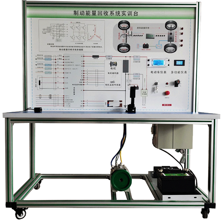 檢測控制面板(裝有各種檢測端子,1448×940mm彩色電路圖和工作原理示意圖)、儀表、點(diǎn)火開(kāi)關(guān)、電機控制器、車(chē)載充電器與充電接口、DC-DC轉換器、鋰動(dòng)力電池組、電動(dòng)車(chē)電機、剎車(chē)開(kāi)關(guān)、上位機軟件、檔位開(kāi)關(guān)、油門(mén)控制裝置、大電流繼電器、電源總開(kāi)關(guān)、急停開(kāi)關(guān)、輔助蓄電池(12V45AH)、一體化全鋁合金型材搭建的移動(dòng)臺架(1500×700×1700mm 帶自鎖腳輪裝置,帶安裝檢測端子的原理面板,面板1448×940mm)、設備操作說(shuō)明書(shū)。