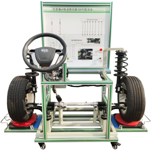 動(dòng)力轉向控制電腦(ECU)、診斷座、點(diǎn)火開(kāi)關(guān)、前橋懸掛機構、方向盤(pán)、轉向柱、電動(dòng)助力方機、轉向拉桿、前左右車(chē)輪總成、信號模擬裝置、扭矩傳感器、扭矩傳感器信號電壓數顯表、故障模擬與排除裝置、前輪左右轉盤(pán)、一體化全鋁合金型材搭建的移動(dòng)臺架(1500×1000×1700mm ,帶自鎖腳輪裝置,帶安裝檢測端子的原理面板948×898mm)、設備操作說(shuō)明書(shū)。