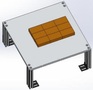 本單元由鋁板和鋁型材組合制成,尺寸為300*200*150mm;碼垛料塊為尼龍材質(zhì)外形尺寸為80*40*20,可根據實(shí)驗要求碼垛多種形式。