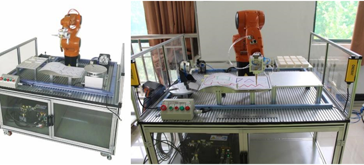 模塊整體臺架材料為優(yōu)質(zhì)鋁型材,一體畫(huà)板由不銹鋼板制成,表面覆蓋PVC膜;具有TCP標定工具,可實(shí)現機器人工具TCP標定練習;實(shí)現基本軌跡編程練習,提供三角形、矩形、圓形及多線(xiàn)段圖形,訓練不同的編程指令,實(shí)現在平面及空間復雜教學(xué)軌跡。