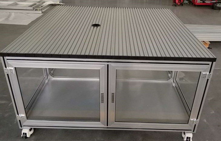 a)框架為高強度鋁型材結構,臺架四周采用優(yōu)質(zhì)鋼板封閉,表面噴涂處理。
