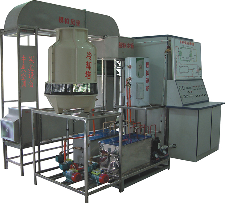 中央空調實(shí)驗設備,中央空調實(shí)驗臺,中央空調實(shí)驗室設備,中央空調實(shí)訓室是制冷專(zhuān)業(yè)重點(diǎn)實(shí)訓室,也是職業(yè)技能鑒定中心制冷高級工和技師考證點(diǎn)之一,能進(jìn)行中央空調設備的測繪、運行管理、調試與維修等實(shí)訓,設備主要由水冷式制冷系統(帶冷卻塔)、空氣調節系統、冷庫模型及電腦智能控制系統等組成。實(shí)訓主要項目有:大型風(fēng)冷式水機組的調試及維護、中央空調機組的安裝及調試維護、中央空調風(fēng)道裝置的安裝及維護,以及中央空調系統設計。為了驗證理論學(xué)習空氣調節以及空調設計知識,中央空調實(shí)訓室采用現場(chǎng)教學(xué)演示中央空調制冷制熱系統,空調循環(huán)系統、空氣凈化環(huán)節等等。
