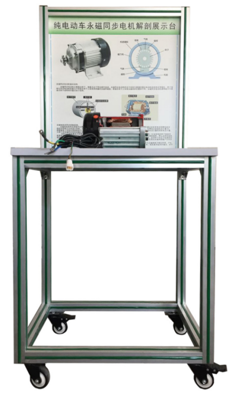 解剖的驅動(dòng)電機(48V1KW直流無(wú)刷電機、48V1KW開(kāi)關(guān)磁阻電機、48V1KW輪轂電機、60V2KW交流異步電動(dòng)機、60V2KW交流永磁同步電機),原理面板圖,可移動(dòng)臺架(帶原理面板)。