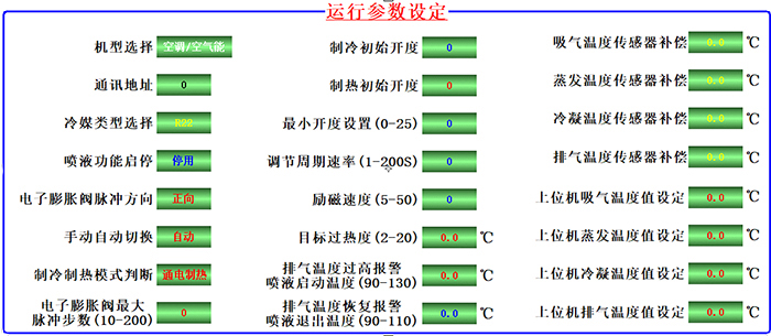 11)、顯示界面上29 路參數控制參數設置/查詢(xún):控制器內所有與控制相關(guān)的溫度參數、時(shí)間參數、控制參數、等29個(gè)參數都可以調整,以適應制冷/熱泵/冷庫/水機等設備。