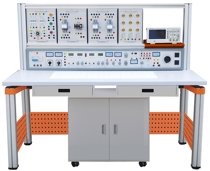 裝置由電源控制箱、實(shí)驗桌(裝有九孔萬(wàn)能插件板)、電氣控制實(shí)驗掛箱,實(shí)驗掛箱支架、移動(dòng)矮柜、示波器架、透明創(chuàng )新實(shí)驗模塊(盒)、學(xué)生凳等組成。實(shí)驗裝置支架與實(shí)驗桌可組合、可拆裝。支架與桌腳一體,鋁合金結構;電氣控制實(shí)驗掛箱與各實(shí)驗模塊可根據實(shí)驗需求自由組合實(shí)驗。
