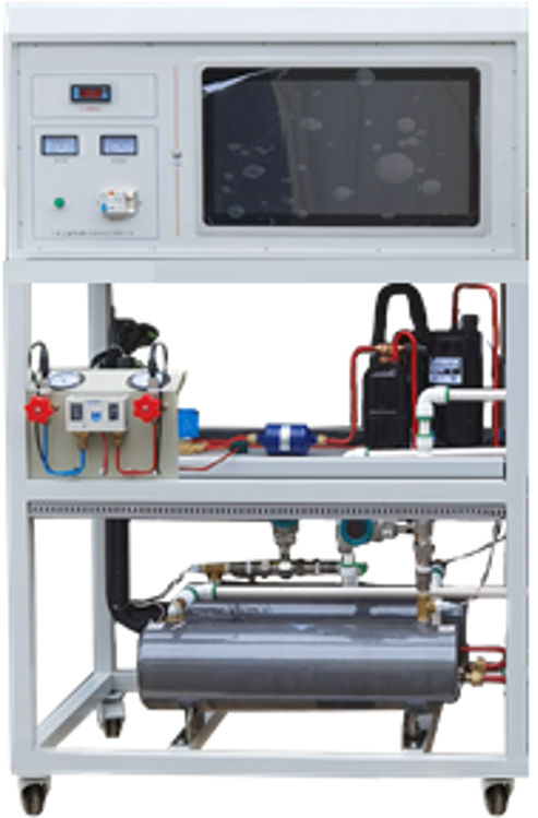 1、采用水冷式機組,配備全封閉式制冷壓縮機、冷凝器、蒸發(fā)器等制冷系統真實(shí)部件,并設有智能溫度調節儀、流量計、壓力表、電壓表、電流表等測量?jì)x表。