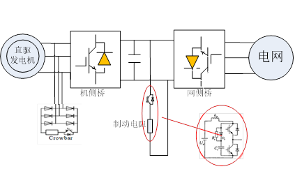 主要為在變流器上添加Crowbar和Chopper電路,并在變流器中配合進(jìn)行相應控制: