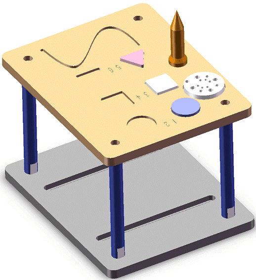 碼垛模塊采用銀色鋁合金材質(zhì),包含:碼垛底板,不同大小的碼垛工件。