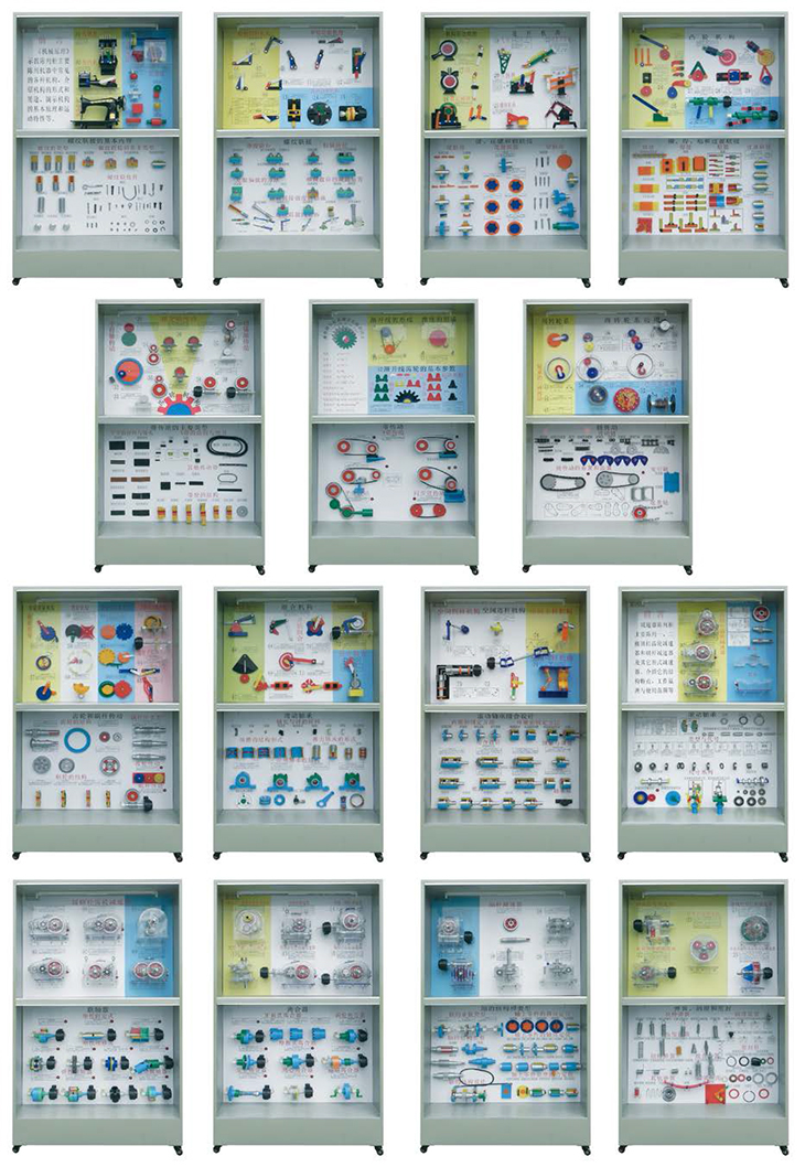 機械綜合陳列柜,該設備是根據大中專(zhuān)院校、職業(yè)學(xué)校的教學(xué)大綱設計的多功能機械綜合示教室是一套《機械原理》、《機械零件》、《減速器》共500余種模型,分三大類(lèi)合并成的電化教學(xué)設備。共15個(gè)柜,30個(gè)板面。該設備采用新型觸摸液晶屏電腦控制主控臺。mpc解說(shuō),觸摸屏、遙控控制,聲控同步循環(huán)播放進(jìn)行演示;又根據教材,教學(xué)需要而任意選擇單獨運轉演示。本產(chǎn)品的特點(diǎn):使作方便,占地面積小,結構新穎實(shí)用,制作工藝更加美觀(guān),整套設備演示形象逼真,運行可靠,有效的提升了教學(xué)生動(dòng)性、趣味性及產(chǎn)品壽命。是一套現代化的機械課程示教室設備。