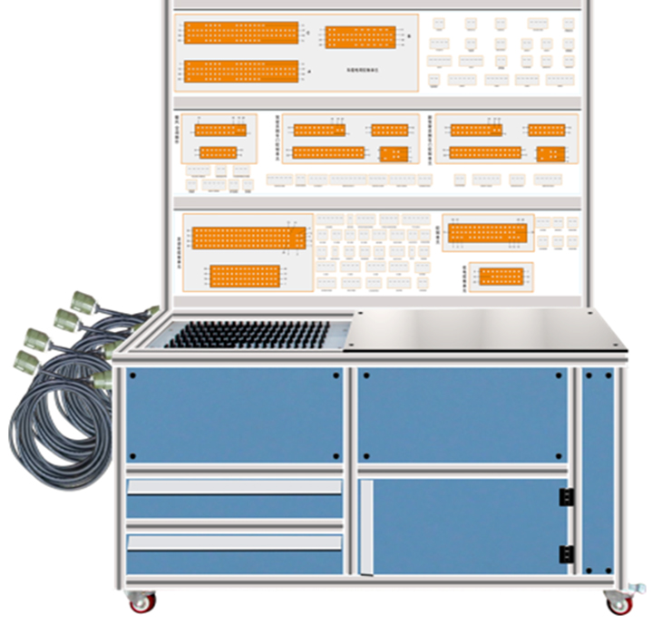 2、通過(guò)裝有與原車(chē)插頭配套插接器的線(xiàn)束,連接故障設置終端,故障設置終端通過(guò)專(zhuān)用線(xiàn)束連接檢測臺,實(shí)現整車(chē)各系統電路教學(xué)、實(shí)訓考核的多功能教學(xué)設備;