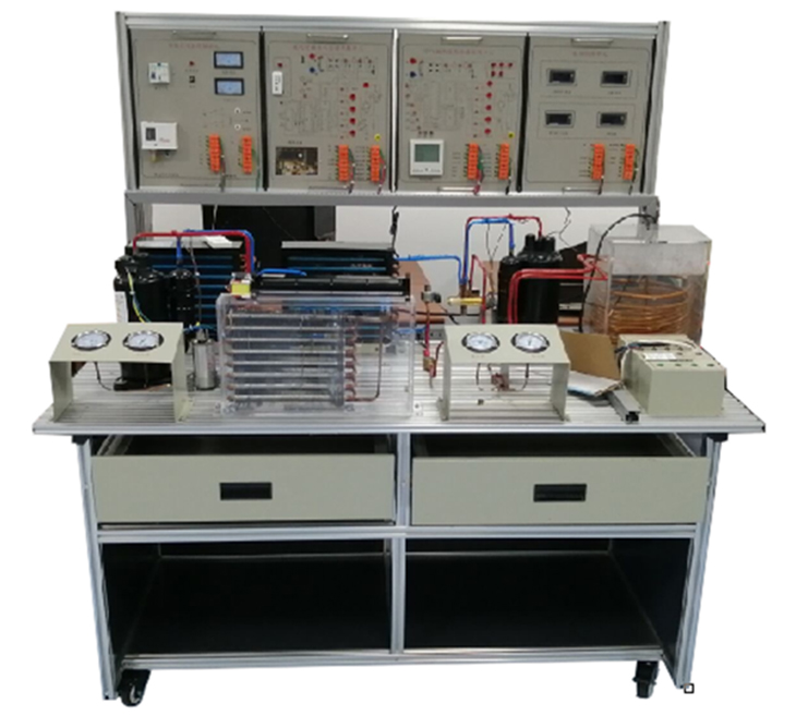 制冷與制熱系統技能實(shí)訓裝置該產(chǎn)品包含了制冷、熱力學(xué)、傳熱學(xué)和電氣控制等技術(shù),主要由熱泵型家用空調系統和空氣源熱泵系統兩大部分組成。在鋁合金導軌式實(shí)訓臺上安裝冷凝器、蒸發(fā)器、節流裝置、壓縮機、控制電路等,構成一個(gè)典型的制冷裝置,電氣控制采用掛箱式,能進(jìn)行制冷系統的組裝、調試、運行,真實(shí)呈現制冷裝置的工作過(guò)程,通過(guò)對制冷系統的安裝、保壓、檢漏、抽真空、電氣連線(xiàn)、加氟、系統調試及工況調整等,完成對學(xué)生的現代制冷與空調系統設備安裝、調試和維修技能訓練。