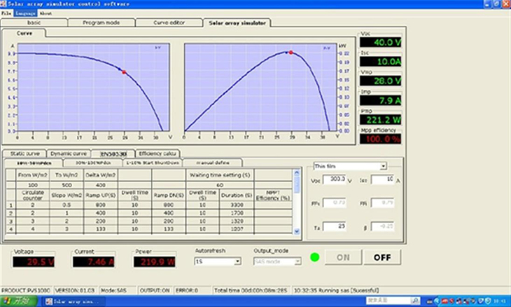Ø輸出電壓、電流、功率的數據顯示及動(dòng)態(tài)曲線(xiàn)顯示