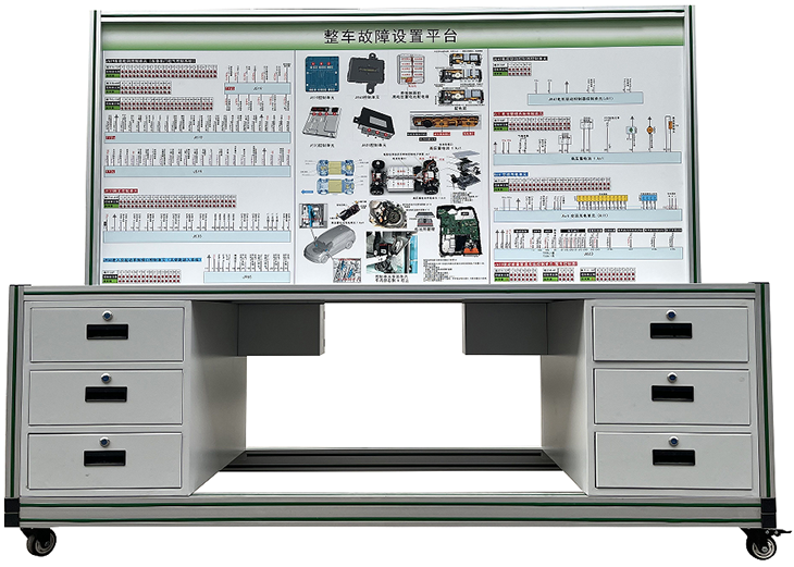 故障設置與檢測連接平臺采用純電動(dòng)汽車(chē)原車(chē)插接器實(shí)物制作,無(wú)損原車(chē)部件與線(xiàn)束,包括電池管理系統、電機控制器、交流充電單元、無(wú)鑰匙進(jìn)入系統、車(chē)身控制系統、車(chē)身電氣系統,網(wǎng)關(guān),車(chē)門(mén)電腦系統插接器及專(zhuān)用線(xiàn)束,通過(guò)專(zhuān)用線(xiàn)束與車(chē)輛連接,可直接在檢測臺面板上檢測系統電路元件的電信號,如電阻、電壓、電流、頻率信號等,可完成電動(dòng)汽車(chē)整車(chē)系統(電池管理系統、電機控制器、交流充電單元、無(wú)鑰匙進(jìn)入系統、車(chē)身控制系統、車(chē)身電氣系統,網(wǎng)關(guān),車(chē)門(mén)電腦系統)相關(guān)的實(shí)驗實(shí)訓內容。適合于"新能源汽車(chē)檢測與維修"整車(chē)的實(shí)訓教學(xué)。