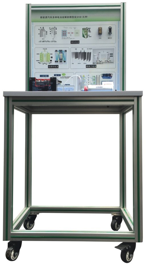2.實(shí)訓臺由可移動(dòng)臺架與原理面板組成,面板立放,繪制三維立體解剖結構圖,介紹電池基本知識,展示電池基本參數。