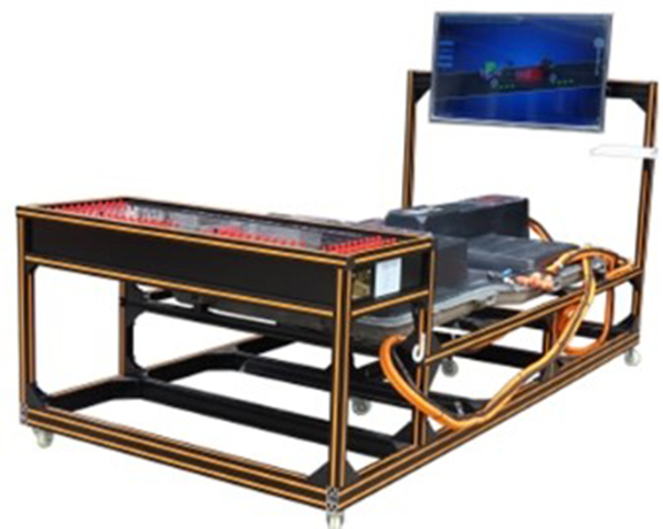 產(chǎn)品采用純電動(dòng)汽車(chē)原車(chē)動(dòng)力電池包及充配電總成,并對電池包密封蓋以及充配電總成上蓋進(jìn)行局部解剖,可直觀(guān)展示動(dòng)力電池包及充配電總成內部重要部件連接結構及位置。同時(shí)該產(chǎn)品可互聯(lián)智能教學(xué)系統,實(shí)現動(dòng)力電池管理系統交互式教學(xué)。