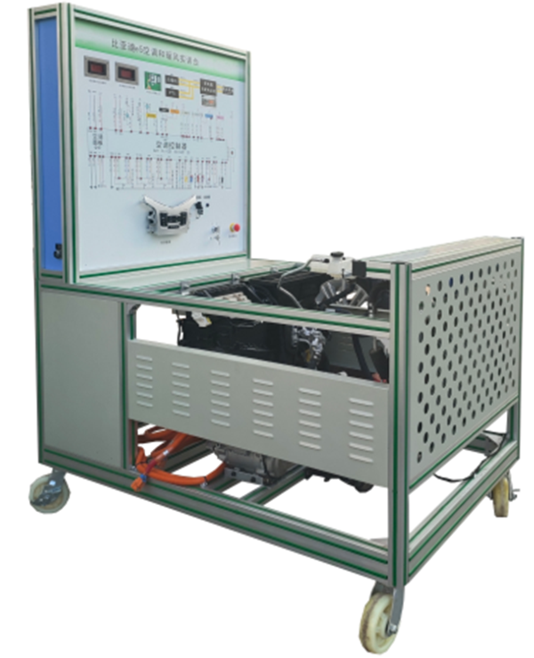 (吉利幾何G6純電動(dòng)汽車(chē))電動(dòng)汽車(chē)空調壓縮機、膨脹閥總成、干燥器總成、鼓風(fēng)機總成、冷凝器、冷卻電子風(fēng)扇、電動(dòng)空調壓縮機控制器總成、空調蒸發(fā)箱總成、空調操作面板、直流接觸器、采暖模塊總成;高低壓空調壓力表、點(diǎn)火開(kāi)關(guān)、電源總開(kāi)關(guān)、急停開(kāi)關(guān)、一體化全鋁合金型材搭建的移動(dòng)臺架(1500×1000×1700mm ,帶自鎖腳輪裝置,帶安裝檢測端子的原理面板948×898mm)、故障模擬與排除裝置、設備操作說(shuō)明書(shū)。
