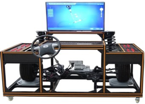 訓練臺采用 純電動(dòng)汽車(chē)原車(chē)電控助力轉向統制作而成,包含轉向電機、前橋、前減震器總成、車(chē)輪、羊角、定位器等部件組成,同時(shí)該實(shí)訓臺可互聯(lián)電動(dòng)助力轉向系統智能教學(xué)系統,實(shí)現純電動(dòng)汽車(chē)電動(dòng)助力轉向系統交互式教學(xué)。