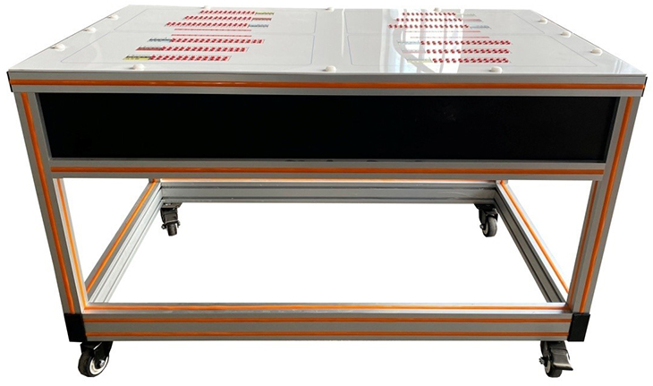 7.檢測實(shí)訓臺面板框架采用2mm厚模具成型鋁合金框架結構;底架選用鋁合金型材制作,主材為40*40mm鋁合金型材;底部安裝3寸耐磨尼龍腳輪4件,移動(dòng)靈活,同時(shí)2個(gè)腳輪帶自鎖裝置,可以隨時(shí)固定位置。