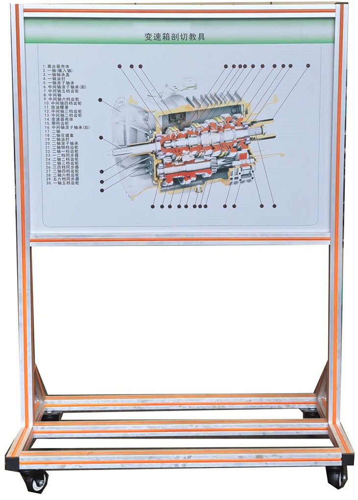 1.變速箱剖切教具采用翻新東風(fēng)猛士300馬力車(chē)型手動(dòng)變速器總成(附件齊全)進(jìn)行解剖,各零部件齊全,能夠全面的展示變速器的內部結構和換檔動(dòng)力傳遞的整個(gè)過(guò)程。